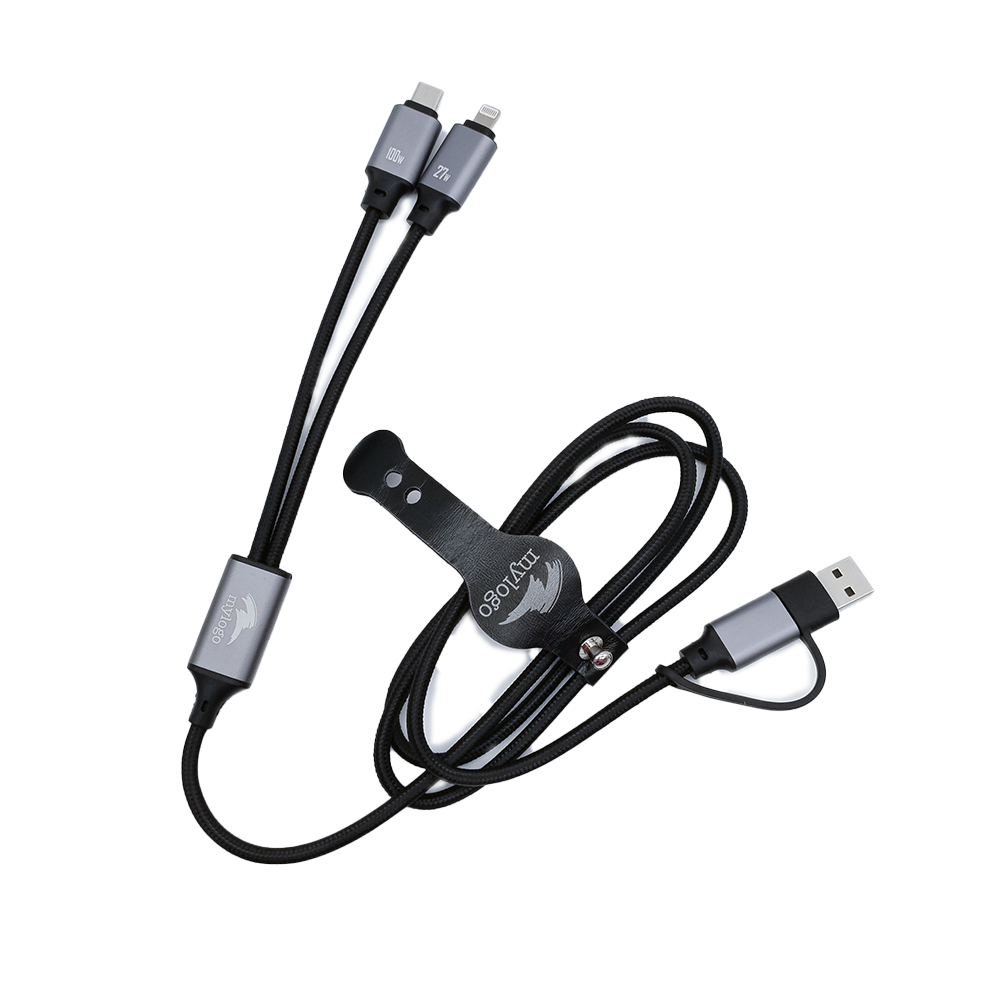 Ladda mycket - snabbare och smartare. Denna 4-i-1 ultrasnabba multiladdningskabel levererar upp till 100W PD-laddning (Typ-C till Typ-C). Med den smidiga adaptern kan du välja att använda USB-A eller USB Typ-C som input/inmatning. Tack vare de dubbla utmatningskontakterna stödjer den samtidig laddning av två enheter och synkroniserar data (datasync) sömlöst - allt i en hållbar, miljömedveten design tillverkad av GRS-certifierade återvunna material. Laddkabeln är kompatibel med Typ-C Carplay och övriga Apple-enheter.